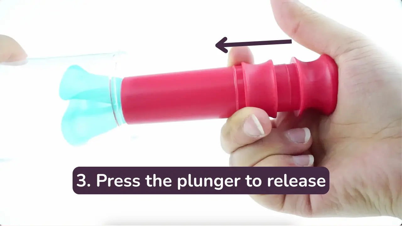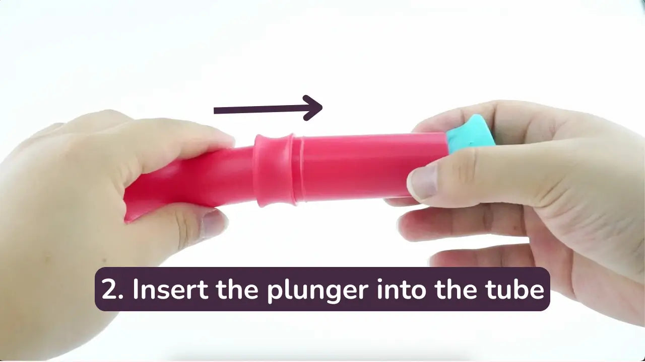 Insert the plunger into the tube, making sure it fits snugly behind your menstrual cup or disc.